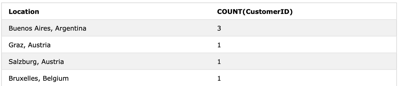 CONCAT_WS(', ', City, Country) AS Location,