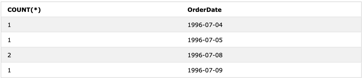GROUP BY는 다음과 같이, 해당 GROUP별로의 개수를 측정할 수 있다.