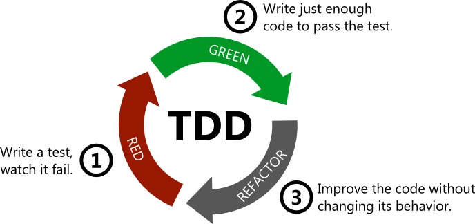 이러한 과정을 흔히 TDD 주기라고 부르며 세가지의 단계로 나눈다. Red는 테스트 실패를 의미하고, Green은 테스트 성공, Refactor은 리팩토링이라고 부른다.